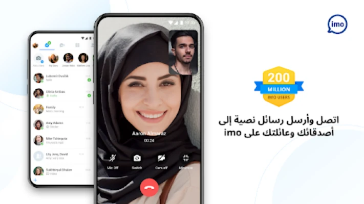 imo: تطبيقك المجاني والآمن للتواصل العالمي. استمتع بمكالمات ودردشات ورسائل دولية سلسة مع أكثر من 200 مليون مستخدم. يربطك imo بالأصدقاء والعائلة حول العالم، ويدعم 62 لغة لمشاركة لحظاتك الهامة بسهولة وفعالية.