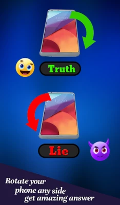 هنا تكمن متعة التجربة بأكملها. إذا أردت أن تعلن إجابته "حقيقةً" وتفاجئ الجميع بصدقه المزعوم، فما عليك سوى إمالة جهازك بلطف نحو اليمين قبل ظهور النتيجة. أما إذا شعرت أن هناك "كذبة" تكمن وراء كلماته، فقم بإمالة الجهاز إلى اليسار لتكشف المستور وتثير الضحكات. استمتع بلحظات الضحك والمرح غير المتوقعة بينما تراقب ردود فعل أصدقائك. "Prank لكشف الحقائق" مصمم ليضيف روحاً جديدة لتجمعاتكم، ويحول كل محادثة إلى مغامرة شيقة من التكهنات والفكاهة.