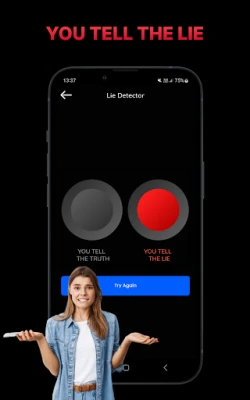 آلية الاستخدام بسيطة وممتعة: ما عليك سوى توجيه صديقك لوضع إصبعه على ماسح البصمات الافتراضي. سيبدأ "اختبار" البوليغراف المزيف بتحليل سريع، ليُظهر بعد ذلك ما إذا كان "يقول الحقيقة" أو "يكذب". ولكن الجزء الأكثر إمتاعًا يكمن في قدرتك على التحكم الخفي بالنتائج! فقبل أن يضع صديقك إصبعه، يمكنك الضغط سرًا على زر رفع الصوت للحصول على نتيجة "الحقيقة"، أو زر خفض الصوت ليظهر "الكاذب" على الشاشة. هذه الميزة السحرية تمنحك القدرة على مفاجأة الجميع بخدع مضحكة وغير متوقعة، أو ترك التطبيق يولد نتائج عشوائية للمزيد من الترقب.
