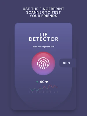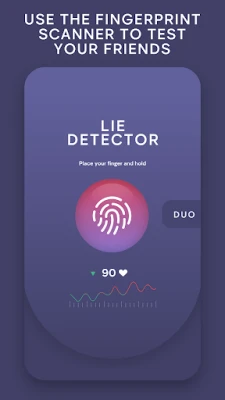 تمتع بتصميم واجهة حديثة وبديهية تجعل التجربة سلسة وجذابة بصريًا. ولمزيد من الانغماس، يدمج التطبيق ردود فعل لمسية (haptic feedback) تشعرك وكأنك تستخدم جهازًا حقيقيًا، مما يضيف طبقة إضافية من الواقعية المزيفة للمزحة. اكتشف وضع "DUO" الفريد، المصمم خصيصًا لتحدي صديقك وجهًا لوجه ومعرفة من هو "الكاذب الكبير" في مجموعتك! هذا الوضع يضاعف المتعة ويجعل المنافسة اللطيفة أكثر إثارة.