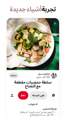Pinterest هو عالم من الإمكانيات اللامحدودة لإلهامك. اكتشف أفكارًا جديدة، تسوق أحدث الاتجاهات، وجرب أشياء جديدة. حوّل أحلامك إلى واقع مع مليارات الأفكار. سواء كنت تبحث عن أزياء، وصفات، أو ديكور منزلي، Pinterest يجعل كل شيء ممكنًا.